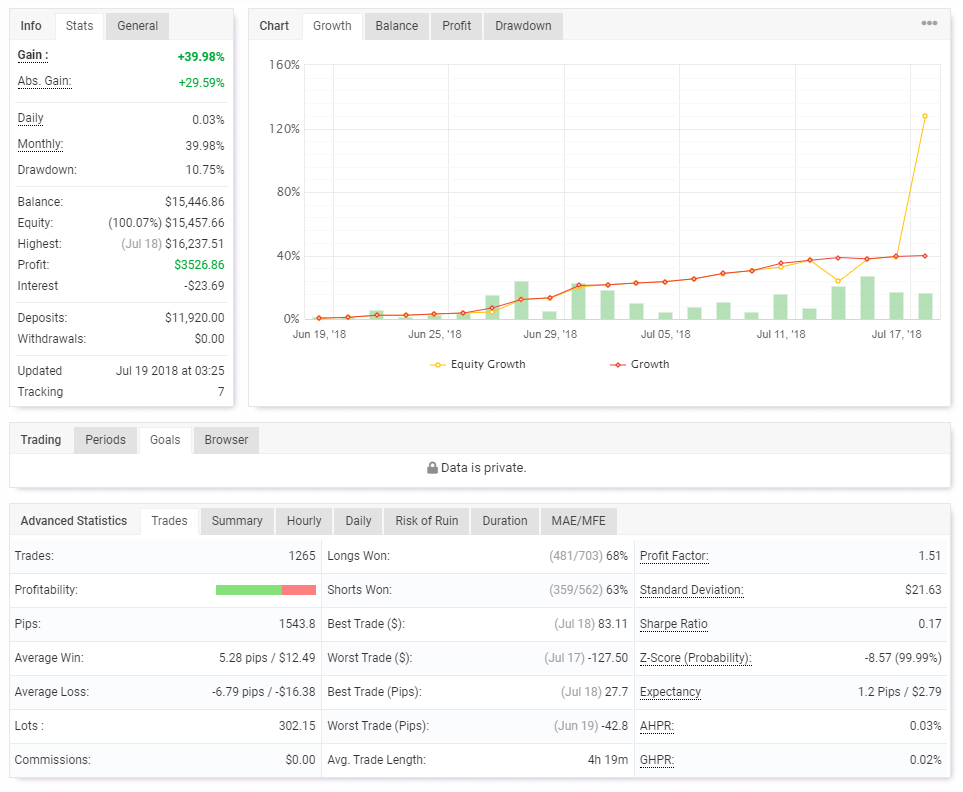Forex Fury V3 四年实盘验证稳定盈利 该软件由Forex Steam的同一批开发人员设计和管理,Forex Fury团队表示目前已有4000多个活跃的Forex Fury客户,为了使他们的交易解决方案适应不断变化的市场条件,他们在2020年发布了此更新 v3版本。 EA评测 该EA在myfxbook网站上有数个跟踪账户,其中最有说服力的是文章中展示的实盘跟踪账户,该账户稳定盈利四年,且回撤极底,值得深入关注 友情提示:该EA对交易 时段 相当敏感,小伙伴们挂机验证或者回测的时候要先弄清楚 交易账户的服务器时区 , 根据时区进行设置,设置方法参考该EA使用手册。 Forex Fury是一个功能强大的交易系统,仅对为其用... 971 0 380