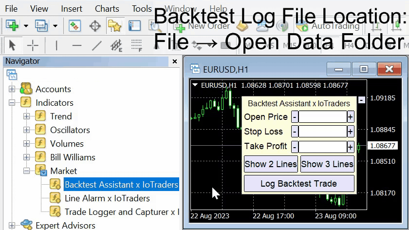 Run MetaTrader 4 -> File -> Open Data Folder -> MQL4 -> Files -> Backtest Assistant x IoTraders