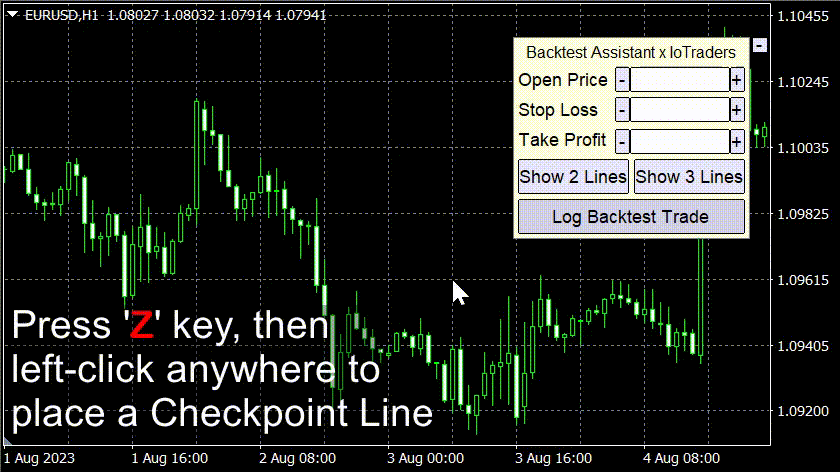 Checkpoint Line : Place a Checkpoint Line anywhere on the chart by hitting ' Z ' key and then left-clicking a candle. Then, hit " E " key to return the chart view back to the Checkpoint Line whenever you get lost while scrolling through the chart