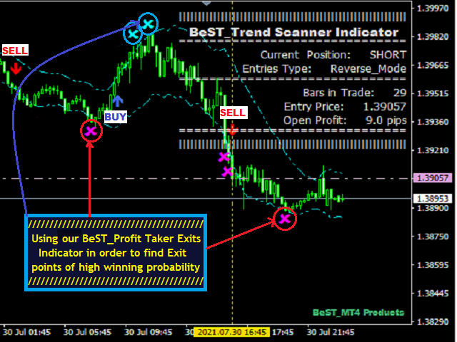 It is also important to note that this particular tool it deals mainly with the identification of appropriate points of Entry into the market. So it is necessary the parallel use of a good Exit Strategy (for example using Mov.Average, CCI, MACD,BeST_Profit Taker Exits Indicator, etc. along with an appropriate Risk and Money Management method (using SL,TP,Trailing Stop,Time Stop,…).