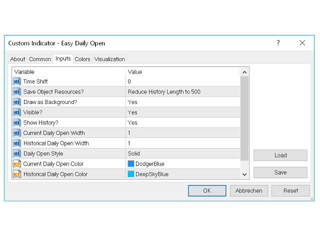 - Daily Open Style - Set the style of the levels (for example solid, dashed, dotted etc.