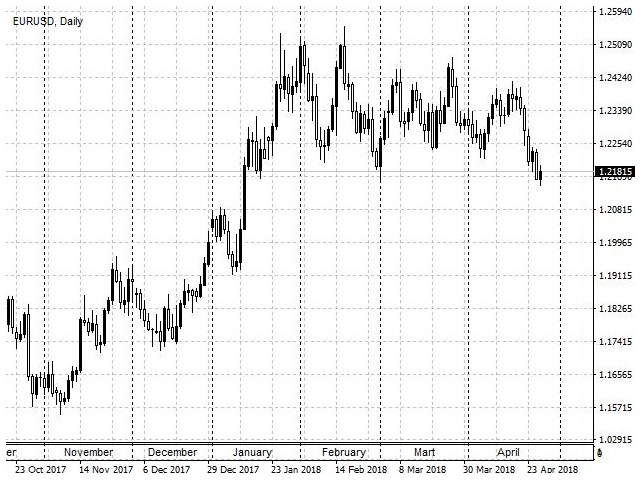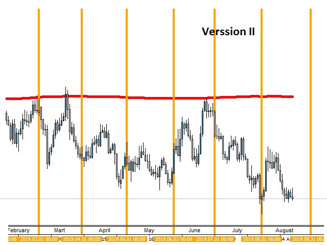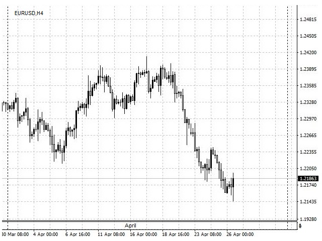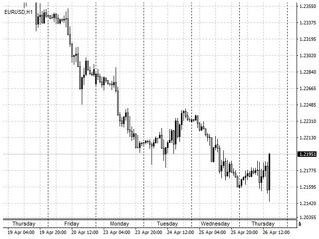 In the MetaTrader 4 trading terminal, these periods are separated by vertical dashed line, which can be enabled or disabled by simply pressing the "Ctrl + Y" key combination.