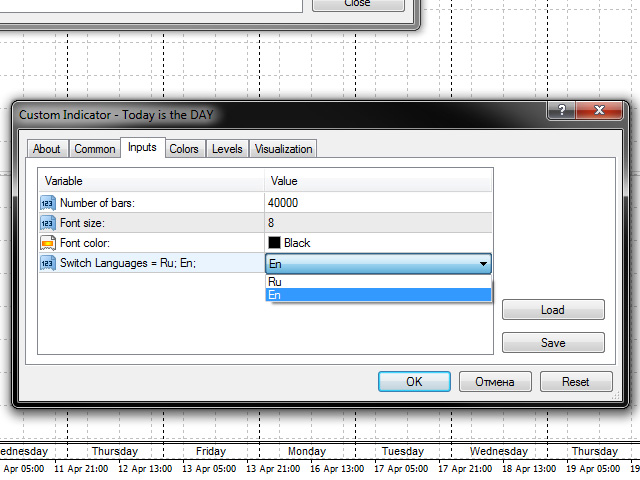 - Switch Languages = Ru;En; - language of the indicator text, default: En.
