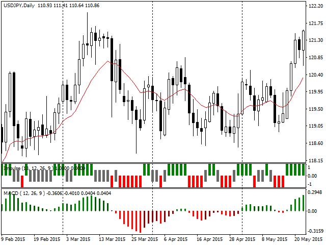 - Moving average and MACD histogram decrease - red bar, it is forbidden to buy.