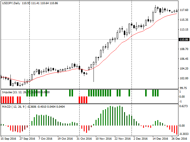 The implementation of the impulse system described by Dr. Alexander Elder.