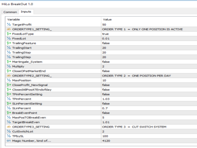 Notes : order type 4 is not part of the strategy in this EA, it is held to pass validation. the order types used are 1, 2 and 3