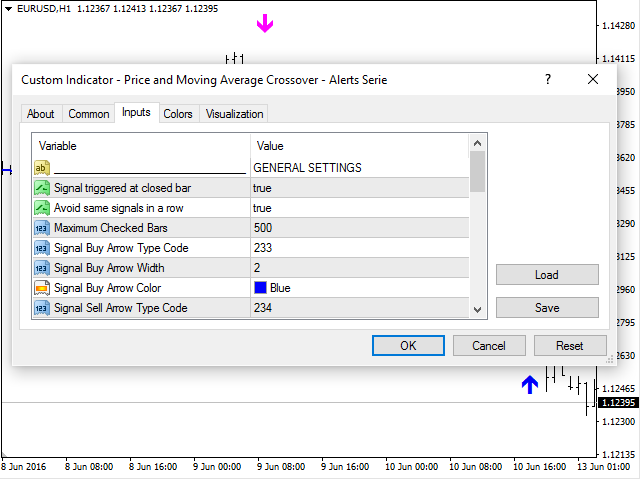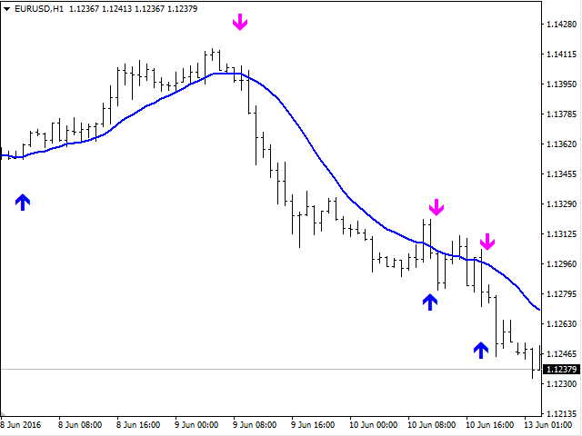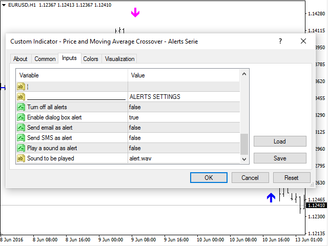 Crossing of market price and moving average with all kinds of alerts and features to improve visualization on the chart.