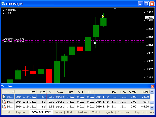 Before placing an opposite orders, the input window is opened allowing you to modify all input parameters: