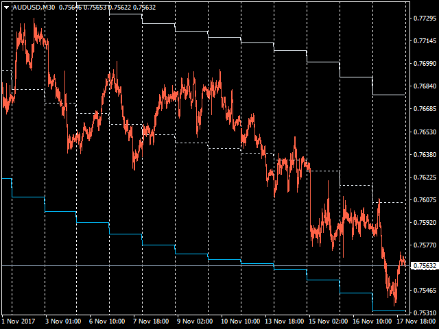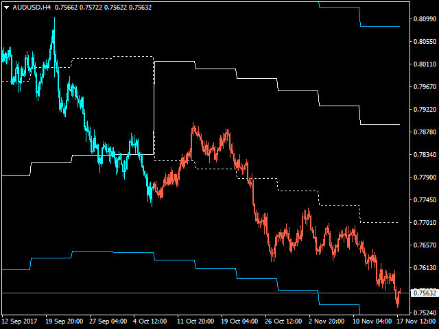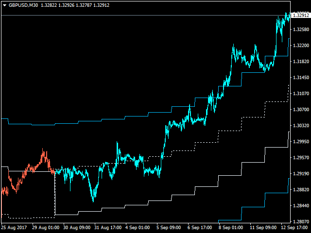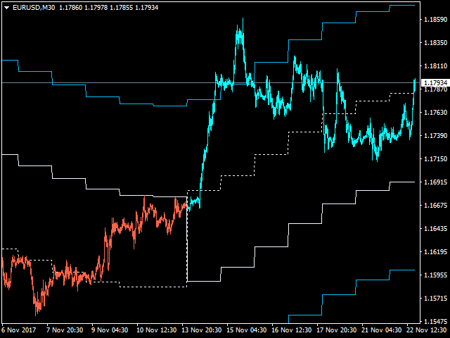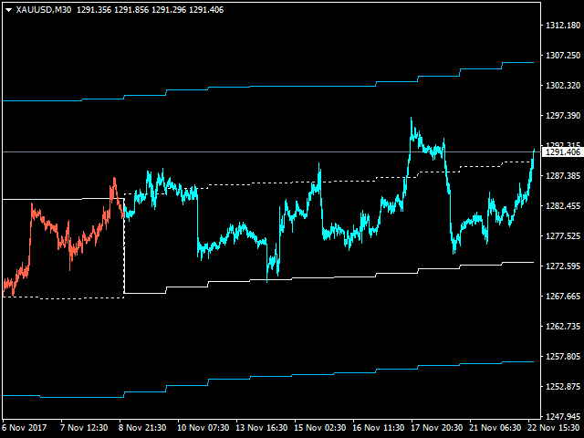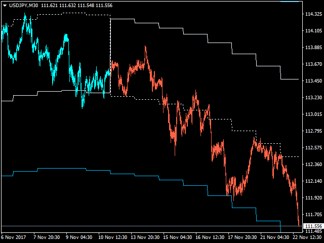 价格位于内层白色通道时入场, 价格触及外层通道则出场。
