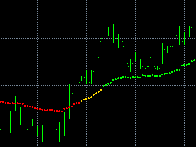 The indicator displays the averaged value of the moving averages of the current and two higher timeframes with the same parameters on the chart. If the moving averages are located one above the other, the resulting one is painted in green, showing an uptrend, in the opposite direction - red color (downtrend), intertwined - yellow color (transitional state)