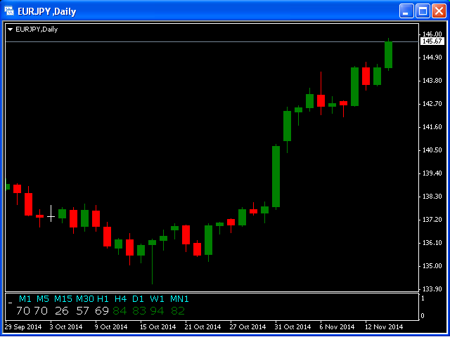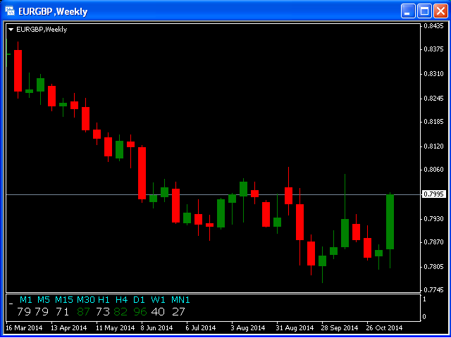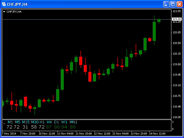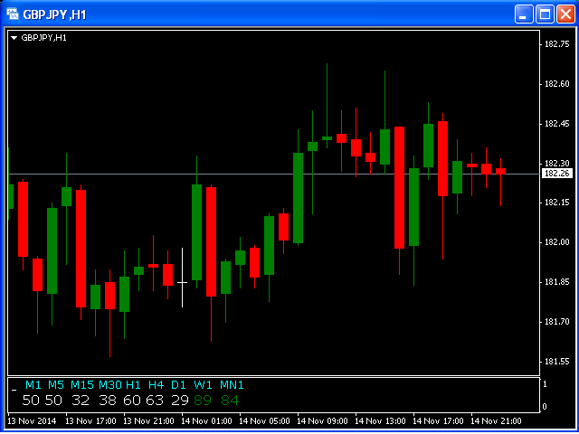 This indicator is based on the classical indicator STOCHASTIC and will be helpful for those who love and know how to use not a visual, but digital representation of the indicator. All TimeFrames Stochastic MT4 indicator shows values from each timeframe (M1, M5, M15, M30, H1, H4, D1, W1 and MN1).