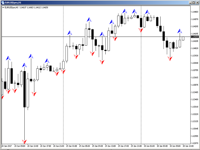 - Arrow offset - visual offset of the arrow from the bar's High/Low in points.