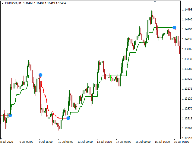 Traders can stay updated on trend changes by receiving alerts on their PC in the MetaTrader 4 terminal or via mobile PUSH notifications in the iOS or Android application. Supertrend is a non-repainting indicator, which means it calculates trend changes only when the last bar is closed, making it highly recommended to use on trending instruments to increase the probability of accurate signals.