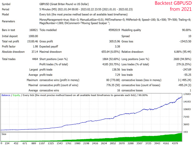 Moving Speed Scalper is a trading robot uses Scalping Strategy to find opportunities in the market and execute trades with a high probability of winning. The EA uses moving averages to filter the trend, although this trending strategy is simple it works well. Combine the relative volatility of price cycles to determine the best entry position.