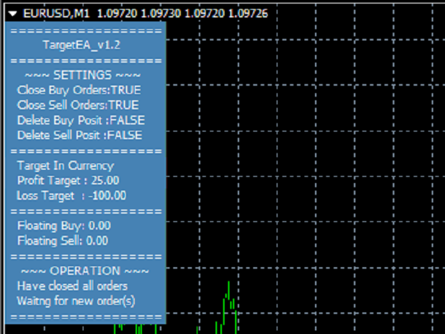 - CloseBuyOrders - Close all buy positions if target achieved.