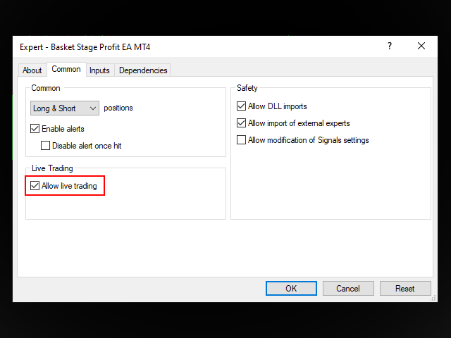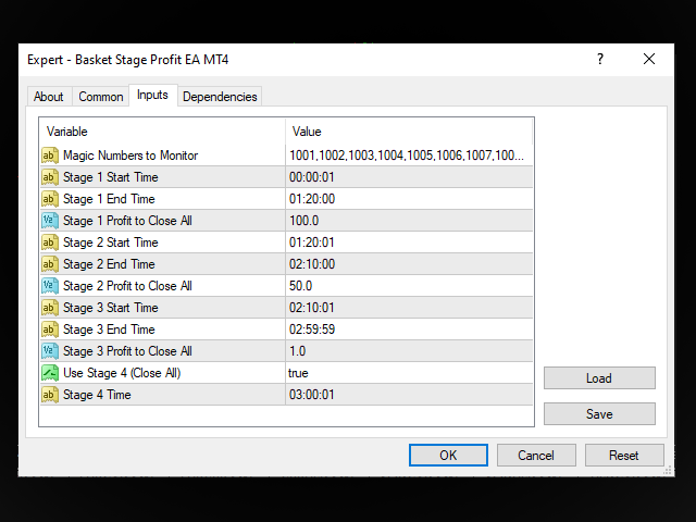 注意: Basket Stage Profit EA ΜΤ4 在 MT4 策略测试器中不起作用。它只能通过管理未结或即将打开的订单来运行。
