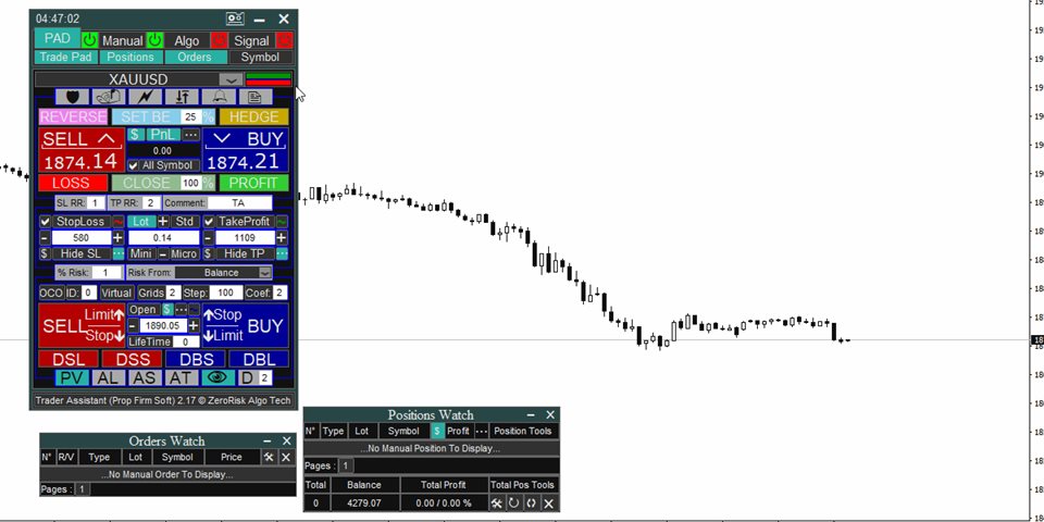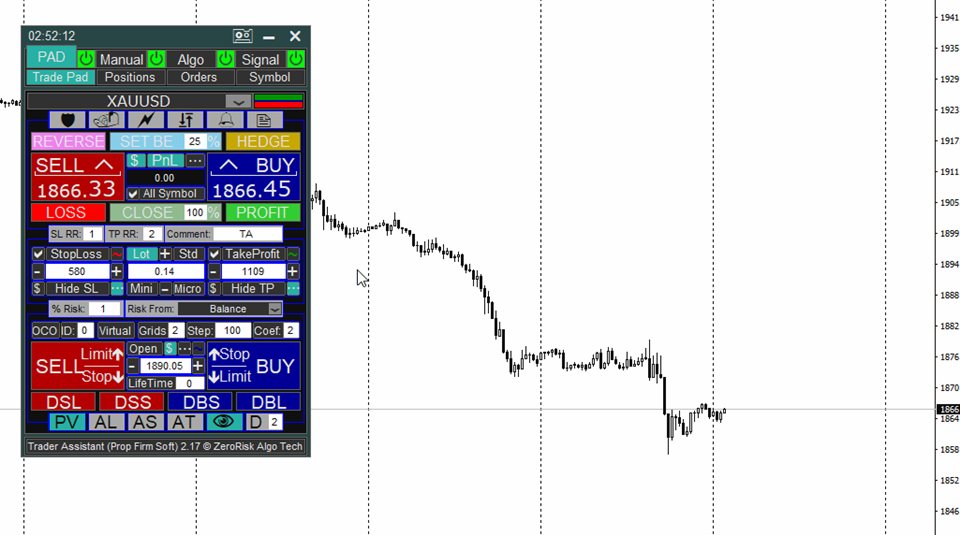 For ZeroRisk Manual Trader, please if you are novice or emotional trader or incapable to respect your trading plan and prop firm rules, or incapable to take a full control of your emotions, just install it in two-step trading mode and let a machine take a full control of your trading activities.Key Features:1. ZeroRisk Trade PAD (ZRP)