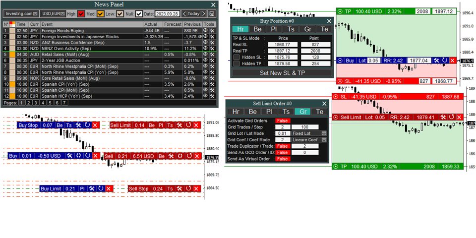 - News Panel: you can with one click import news events from top 3 trusted news website (Investing.com, Daily FX, Forex Factory) to your Metatrader