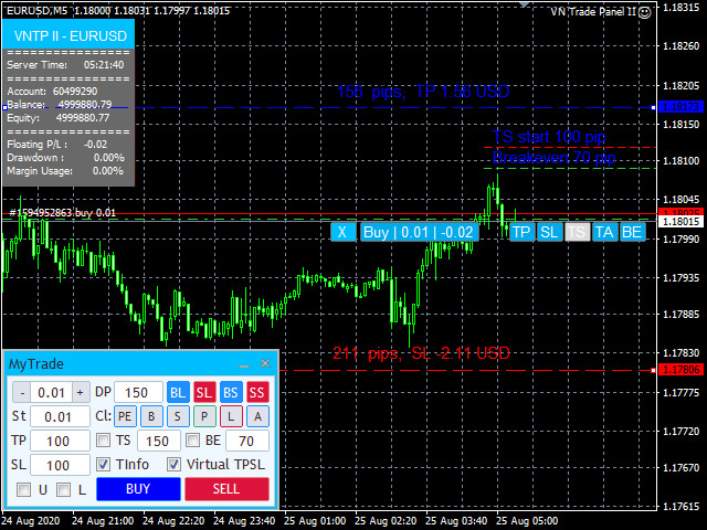 To work with open orders, the breakeven and trailing stop functions are provided.