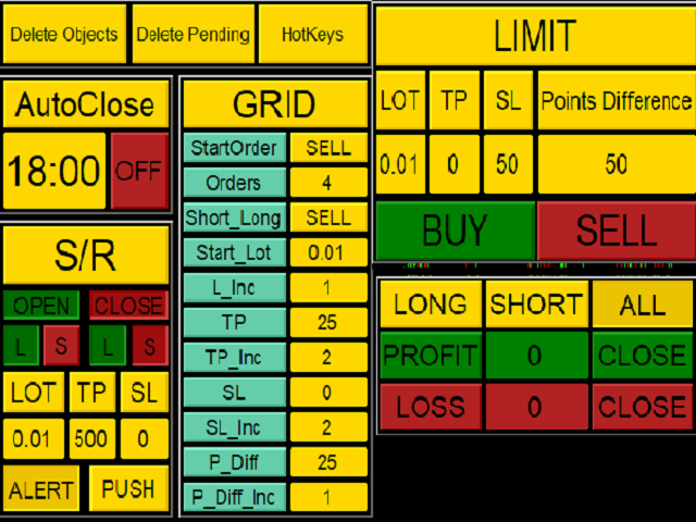MULTI TRADER TOOL - SUPPORT / RESISTANCE, ONE CLICK CLOSE / OPEN, AUTO CLOSE, GRID ORDERS, ALERTS.