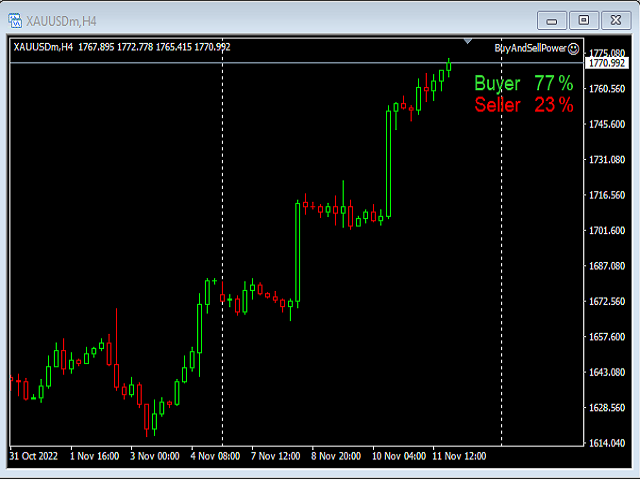 This Expert Advisor will only show the buyer and the seller power in percentage on the upper right corner of the selected chart. The percentage of the Buyer and Seller is calculated based on the Open, Close, High and Low price of the selected candle.
