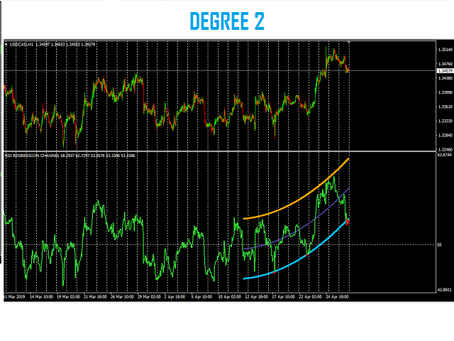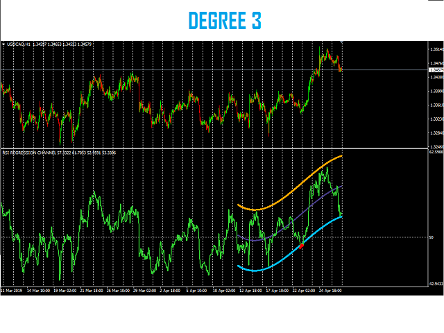 In statistics, Regression Channel is a approach for modelling the relationship between a scalar response (or dependent variable) and one or more explanatory variables (or independent variables).We Applied relative strength index(rsi) values to develop regression models of various degrees in order to understand relationship between Rsi and price movement.