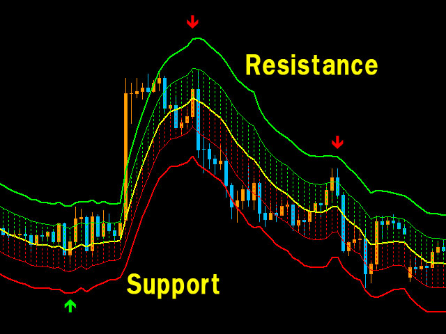 trade with the obvious trend of the bandsupper bands are resistance while lower bands are supportsimply open orders when arrow appearstoploss at the outer edge of the bandstakeprofit at the opposite edge, or using tralingstop, let profit run.