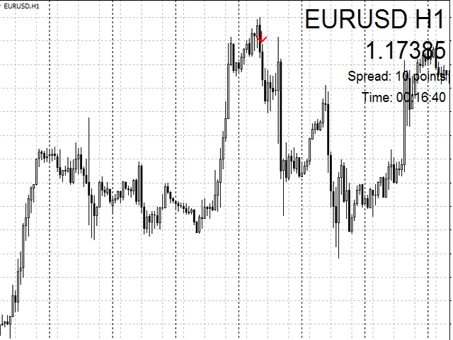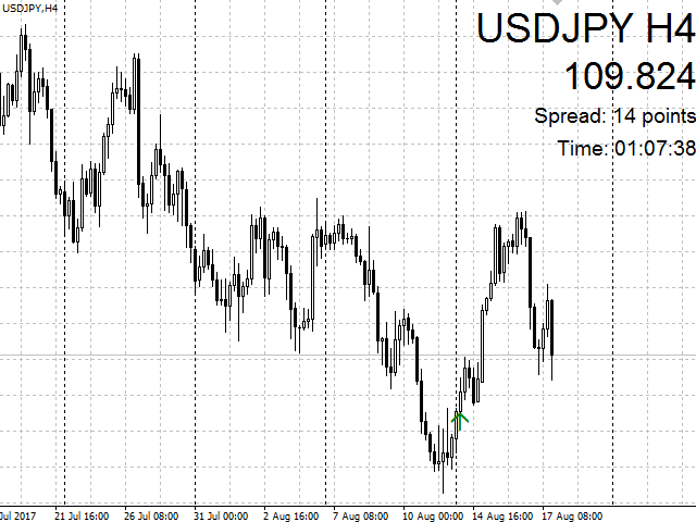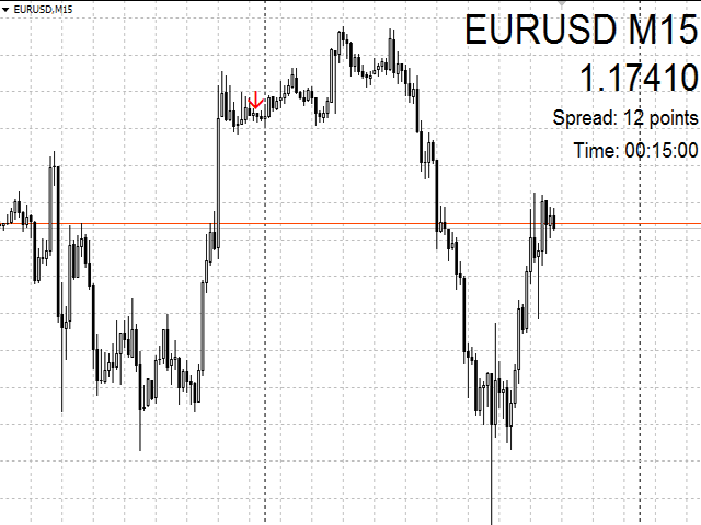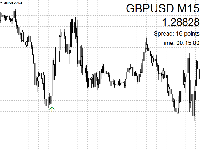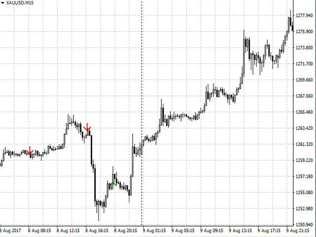 When a new candle opens, a signal for opening positions (buy or sell) is generated. It is recommended to use the indicator for intraday trading (M15, М30, Н1 timeframes).