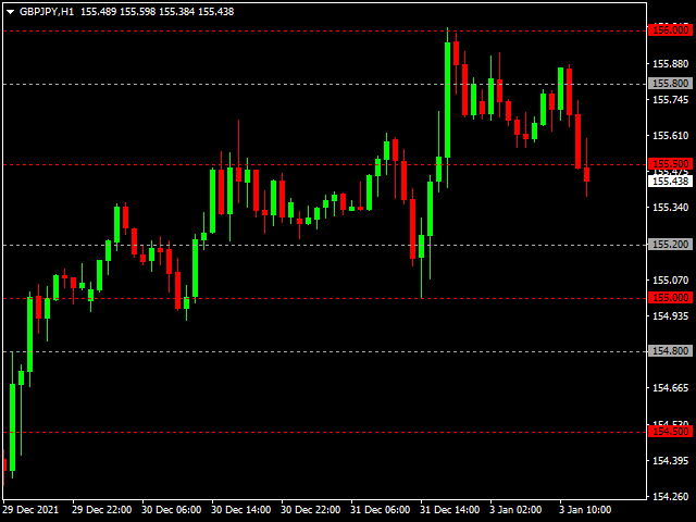 - 方便地在当前价格上下的数字“000、200、500 和 800”或“000、250、500 和 750”处绘制矩形或线条。