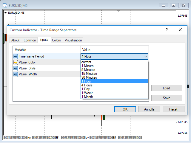- GMT_Hour (ex. +1 or -1) to move the lines at Period Time +/- tot hours in input