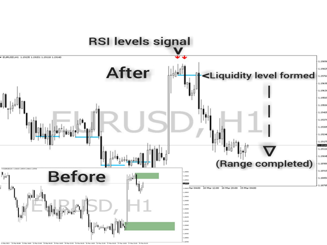 RSI Levels generates buy and sell arrows based on RSI analysis. Signals are based on extreme levels breakouts and can be further filtered by a volatility metric. Trader can use the mode which compliments his/her trading style.