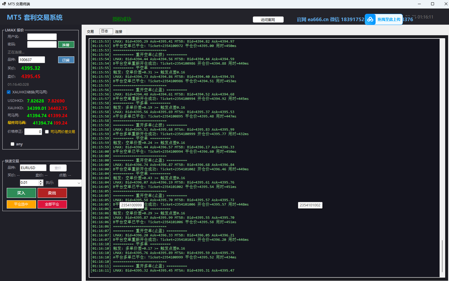 > 智能监控 MT5 与 LMAX 平台价差,全自动执行的黄金套利交易工具