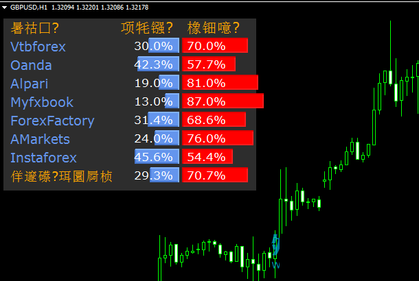 指标提供了oanda,alpari,myfxbook,forexfactory,instaforex的多空情绪。