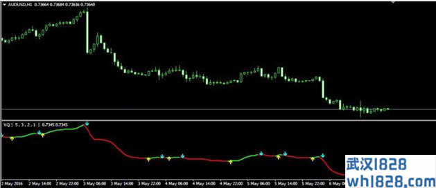 VQ指标在副图用变色线及箭头标识行情波动方向。 VQ指标图表效果如下:VQ MT4指标下载,变色线及箭头标识! 顾比均线组变色版,MT4外汇软件指标,更加易于观察!