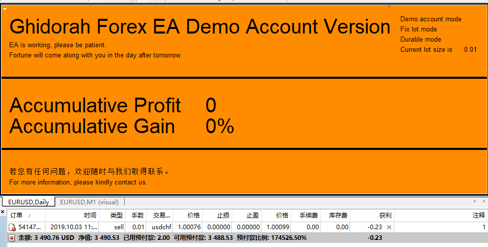 这款ea传闻是个多货币对冲,但我挂了以后,感觉就是28个货币一起开启马丁模式。目前来说,在行情波动不大情况下,还是不错的。默认开启了28个货币对。 已售:0 商品属性 [] 商品标签