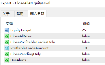 Equity Target 净值百分比Close All Now 关闭所有订单Close Profitable Trades Only 关闭所有盈利订单Proftable Trade Amount 盈利金额Close Pending Only 关闭所有挂单Use Alerts 使用警报 已售:0 商品属性 [] 商品标签