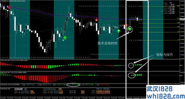 D. 进场时机:满足以上所有条件。可考虑同方向的白色箭头再进场,但也需符合趋势方向指标的条件。也可考虑使用提示警告进场。