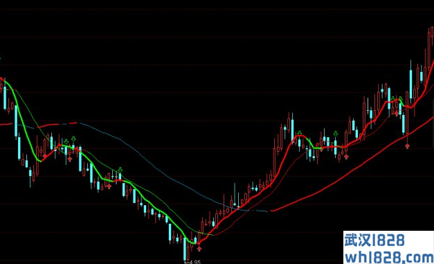 K线在均线上显示为红色,在均线下显示为青色。均线可以随自己调整参数。