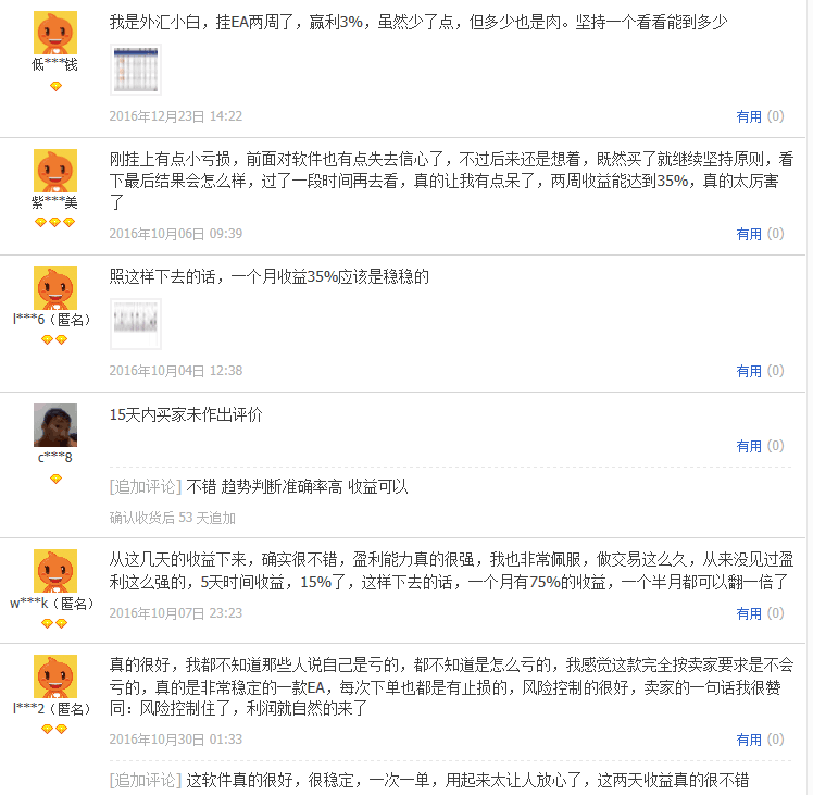 因为EA是软件产品,具有可复制性,除非EA运行不了,否则不退货,有些MT4平台公司不允许使用EA那是运行不了的,请大家尊重店主的劳动。请大家尊重店主的劳动。如果运行一两天,亏损几单,就跑来找店主退货的买家,请绕道,本店不欢迎?店主不在也可以拍,请留下QQ邮箱,店主上线后第一时间发送给您!如果喜欢,请推荐给你朋友