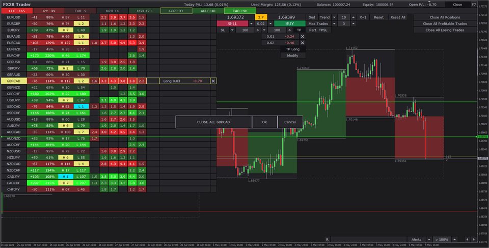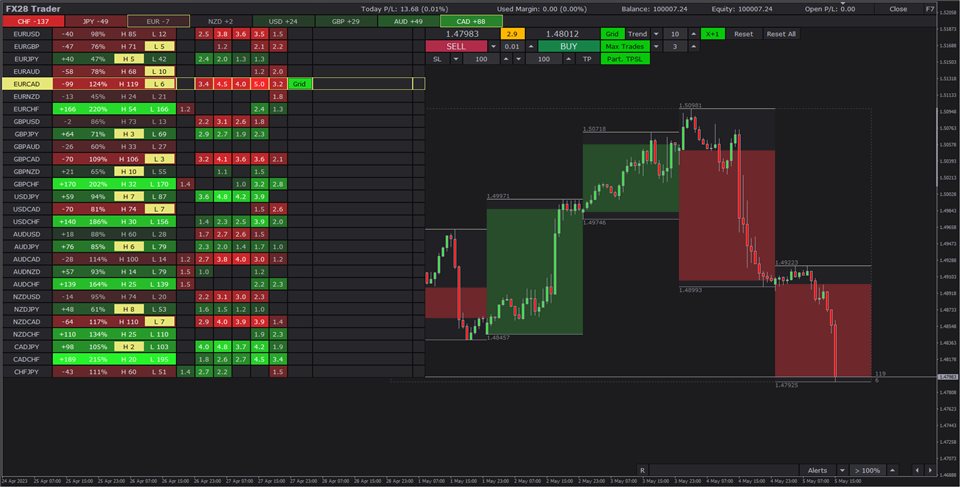 - Ability for semi-automated grid trading with stealth orders. Multiple options to preset automated pyramiding strategies up or down.