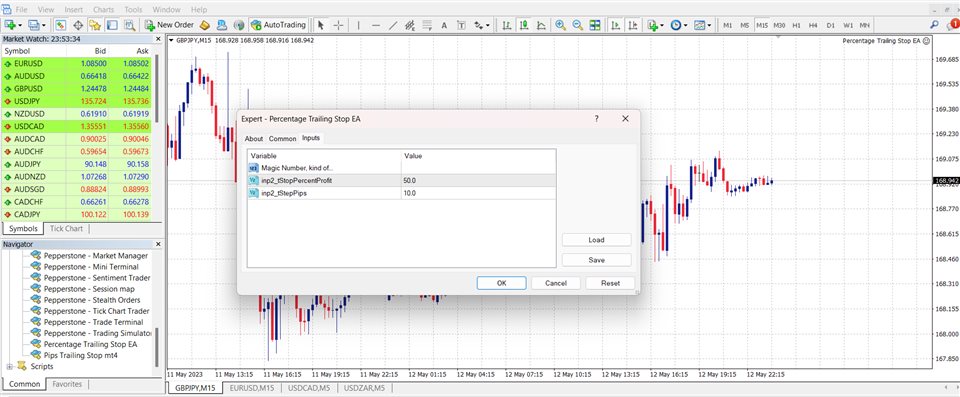 tStopPercentProfit: Sets the value of percentage of current TP for positive trades before your trailing stop is activated.