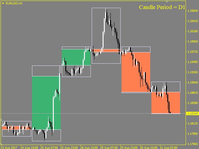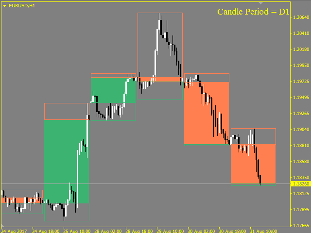This indicator allows analyzing the movement of prices inside a bar. The indicator draws the contours of the bars of higher timeframes on the current chart.