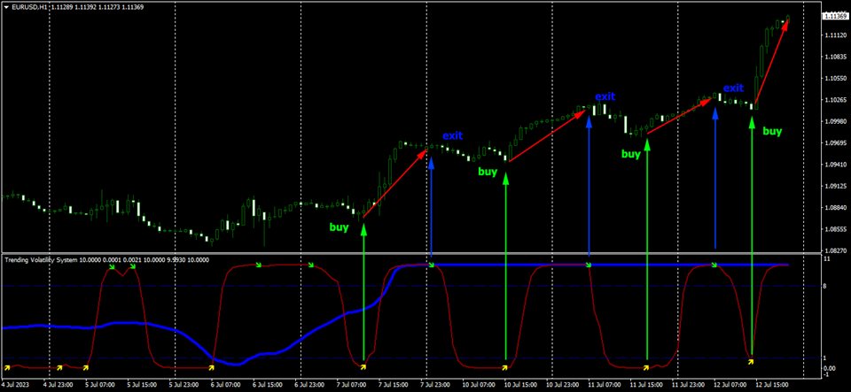 Volatility Trend System - a trading system that gives signals for entries. The volatility system gives linear and point signals in the direction of the trend, as well as signals to exit it, without redrawing and delays.