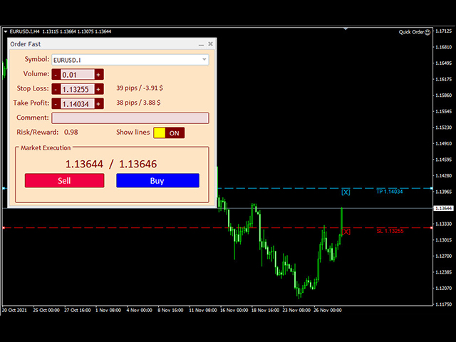 The interface is designed to match the default form of Metatrader and looks intimate to the user and minimize the time required for taking the position.