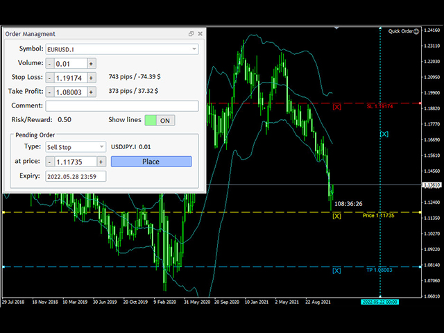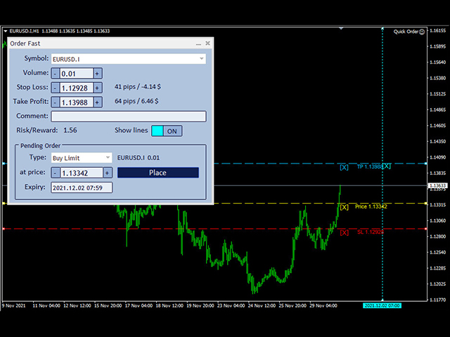 Just set your position parameter values(Price, TP, SL, Ex Date) with just a few simple mouse drags.