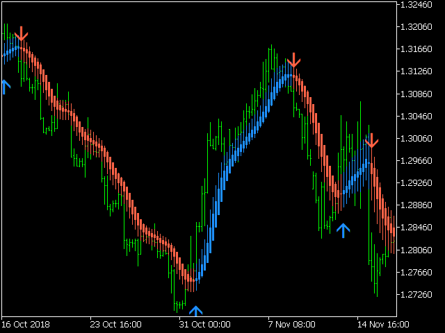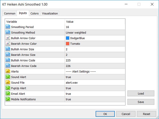 KT Heiken Ashi Smoothed is a smoothed version of the standard Heiken Ashi. Moreover, it also plots buy/sell arrows on a trend change.