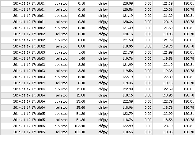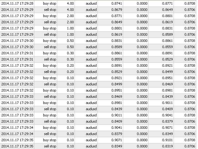 BuyStop_SellStop_Grid script opens BuyStop and SellStop pending orders.