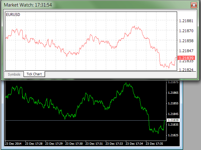 A utility for creating and working with a tick chart in the MetaTrader 4 terminal. You can create a tick chart that works exactly the same as a regular chart. You can apply indicators, Expert Advisors and scripts to the tick chart. You get a fully functional tick chart on which you can work just as well as on a regular chart.