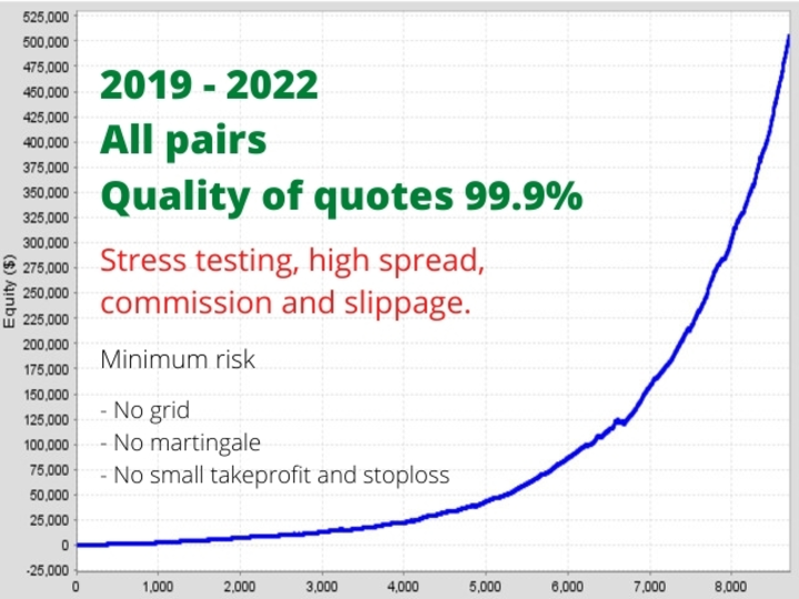 The latest development from the team of Varko Group Inc. A multi-currency trading Expert Advisor whose strategy is based on low volatility at night. The EA does not use high risk grid, martingale or averaging strategies. Each position is insured by a virtual stop loss. An adaptive transaction tracking algorithm is used. Also a unique development, support of transactions when expanding the spread and large market jumps.