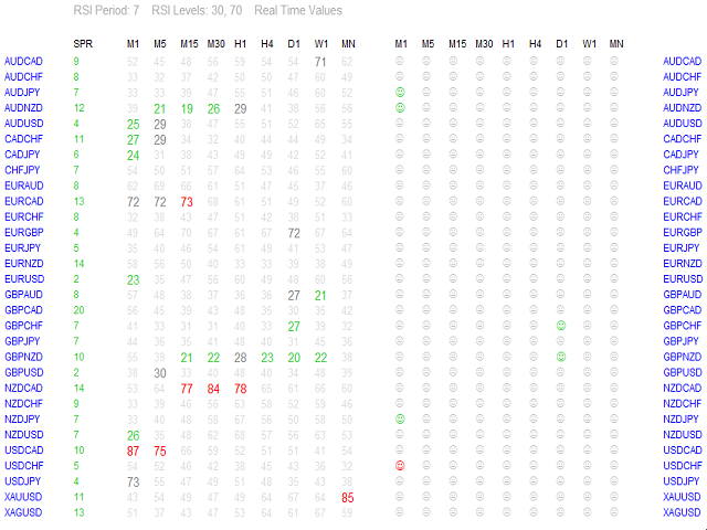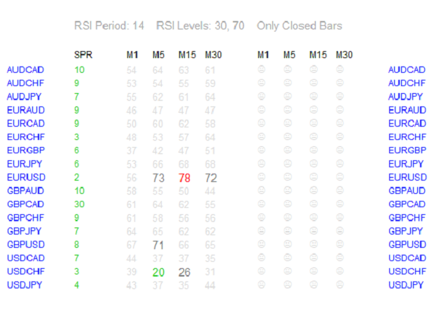 RSI Breakout Dashboard is a tool for multiple currency pairs analysis at the same time in terms of breakout (return) from Oversold or Overbought Zone to Neutral Zone.